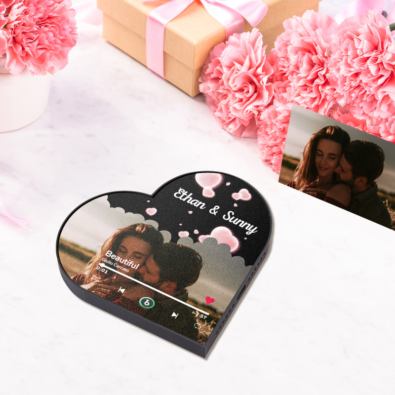 Personalized Heart-Shaped Music Photo Fridge Magnet - Romantic Gift for Couples